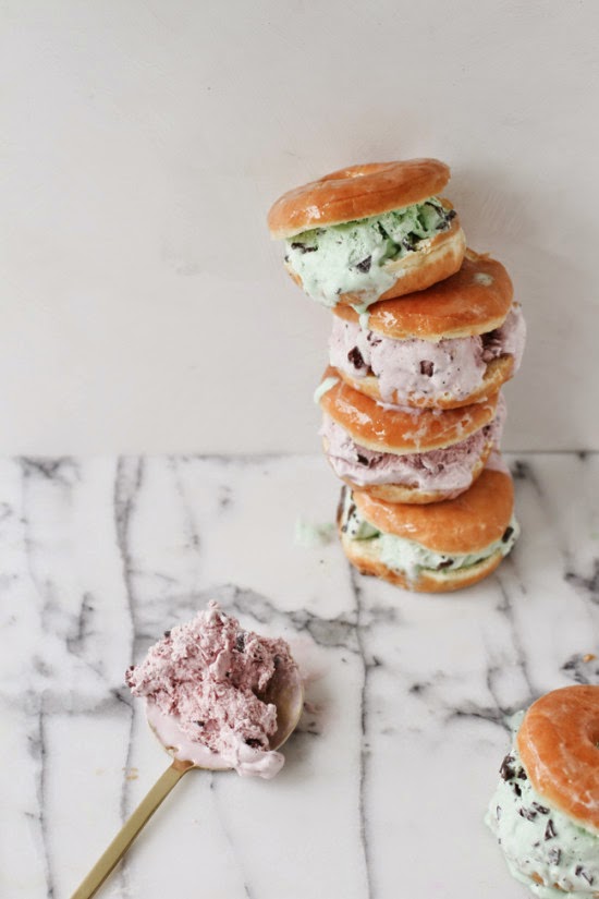 Donuts rellenos de diferentes helados, esta deliciosamente rico.