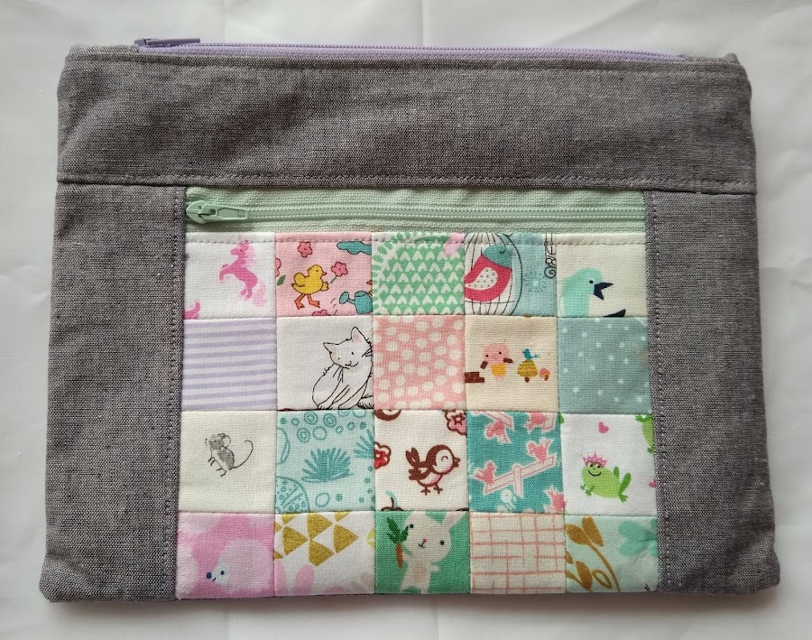 Una para la parte grande y otra para el bolsillo frontal que está hecho con un panel de patchwork de cuadrados pequeños.