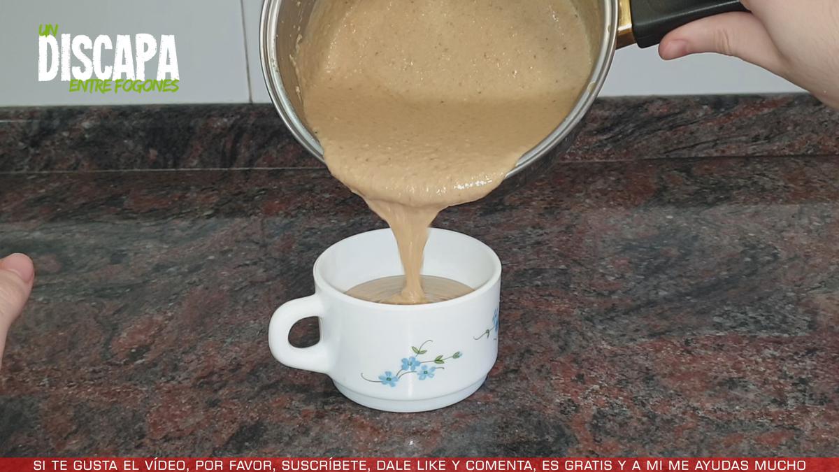 4 Es el momento de añadir la intxaursaltza a los recipientes donde los vamos a servir.