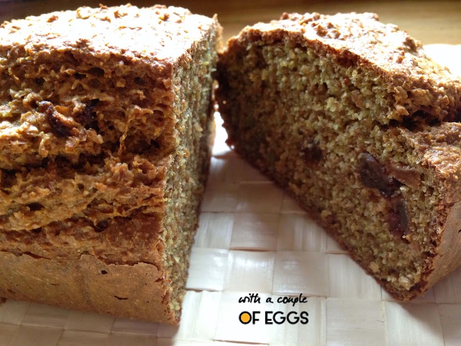 Los trocitos oscuros que veis por el medio del pan son uvas pasas. La receta original no las lleva pero a mí como me encantan, no he podido resistirme a añadir unas cuantas. También podéis ponerle nueces. Está riquísimo.