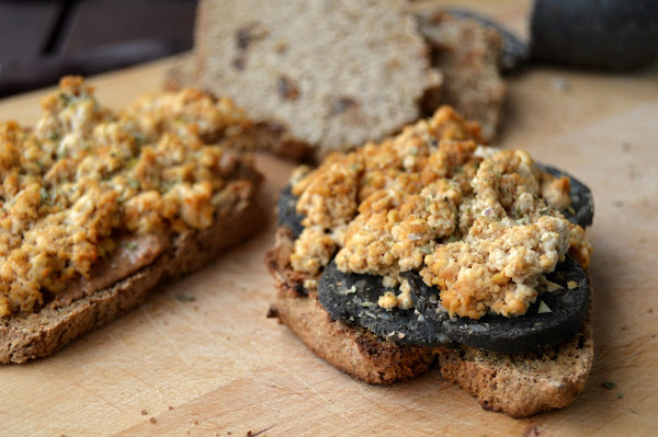 La receta original la he sacado de Happy Herbivore y la he modificado un poco, ¡por fin el resultado que buscaba! Lo usé para acompañar el queso vegano para rellenar que publiqué hace unos días.