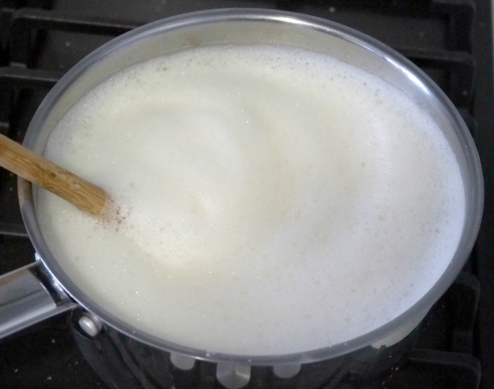 - En cazo calentamos la leche con la ralladura y una pica de sal. Llevamos hasta casi ebullición y retiramos del fuego.