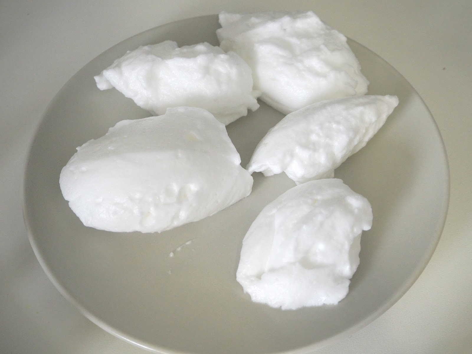 - Ayudándonos con una cuchara, cogemos pequeñas porciones de las claras para hacer las islas. las colocamos sobre un plato y las cocemos al microondas a máxima potencias unos 15 segundos. Cuando la crema de chocolate esté bien fría, ponemos una isla de clara encima.