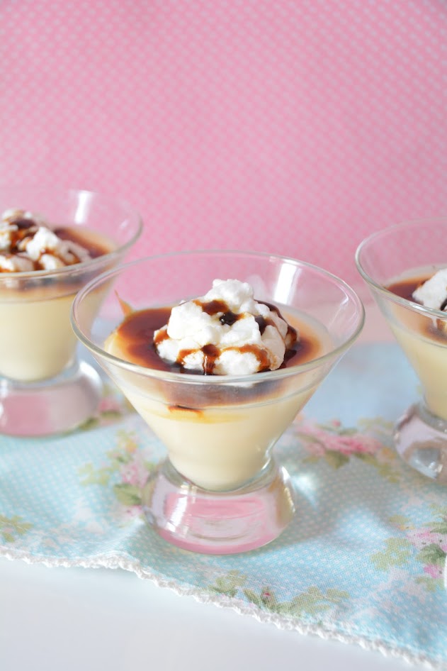 Colocamos las bolas de clara sobre la crema en los vasitos. Llevamos a la nevera hasta la hora de servir para que enfríen. En el momento de servir adornamos al gusto con caramelo líquido.