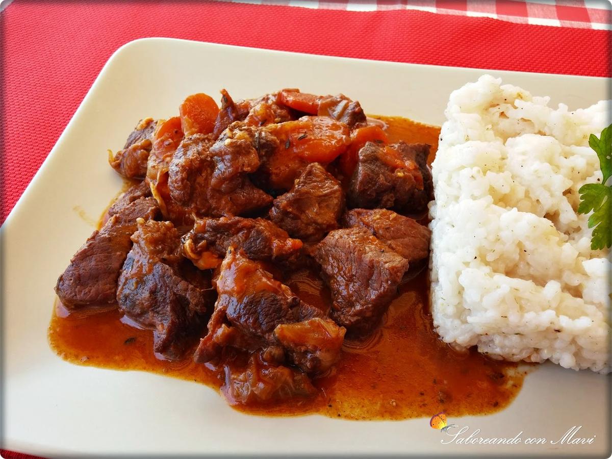 En olla normal a fuego suave 1 hora y cuarto-y media añadiendo un poco más de vino