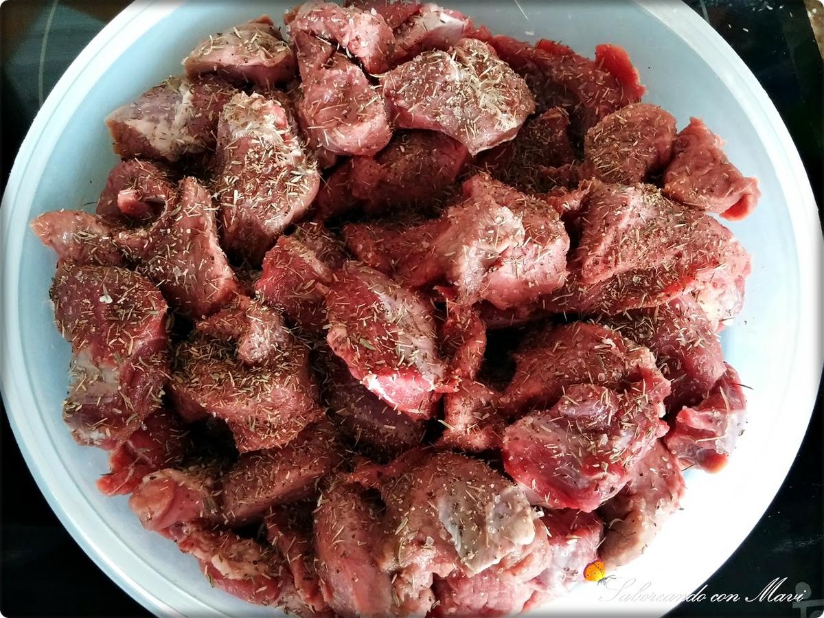 Salpimentamos la carne y le ponemos tomillo