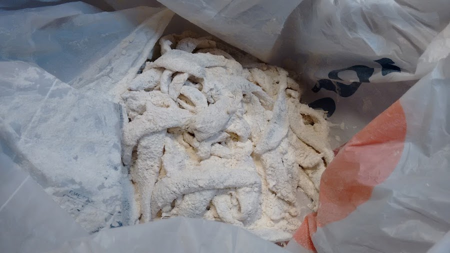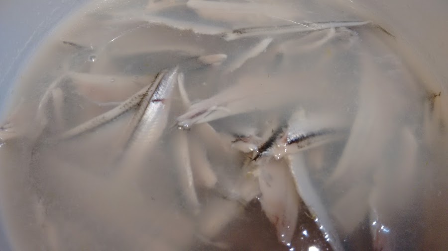 Quitar las raspas y dejar en agua fría para que se desangren. Media hora aprox.