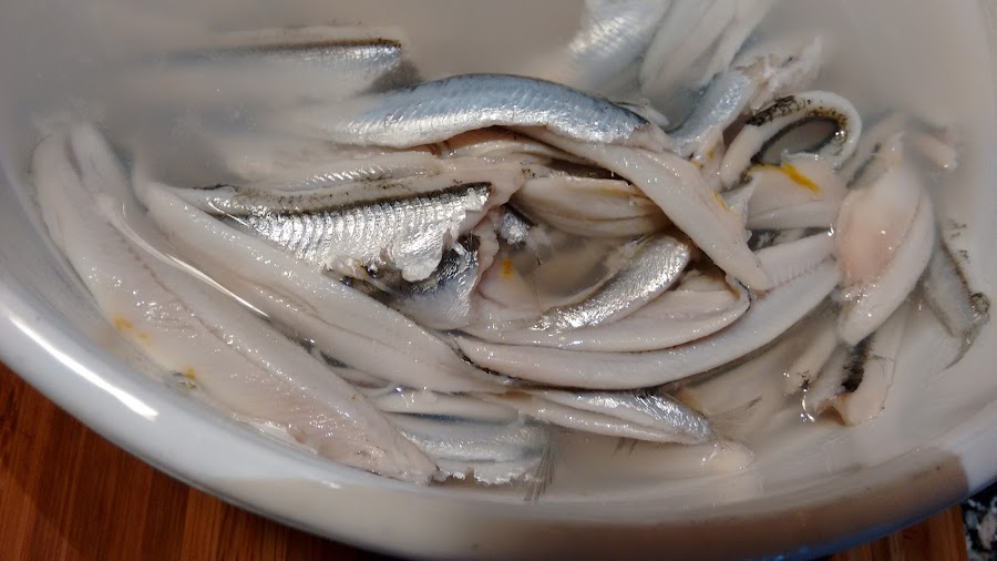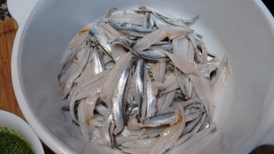 La receta es igual que la de boquerones en vinagre solo que al final se enharinan y fríen.