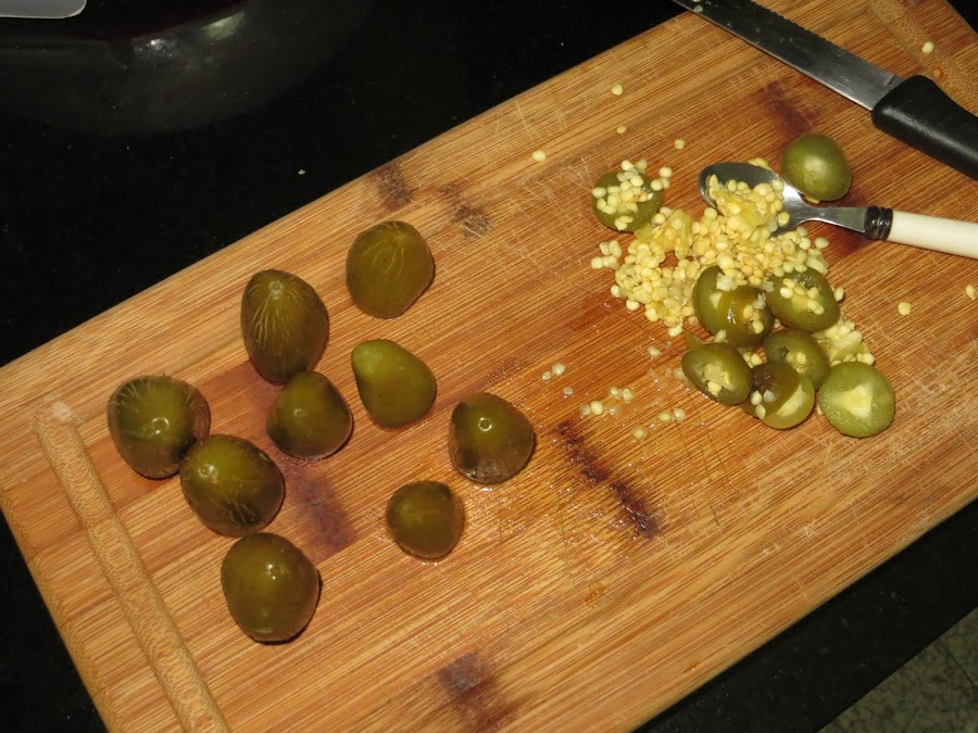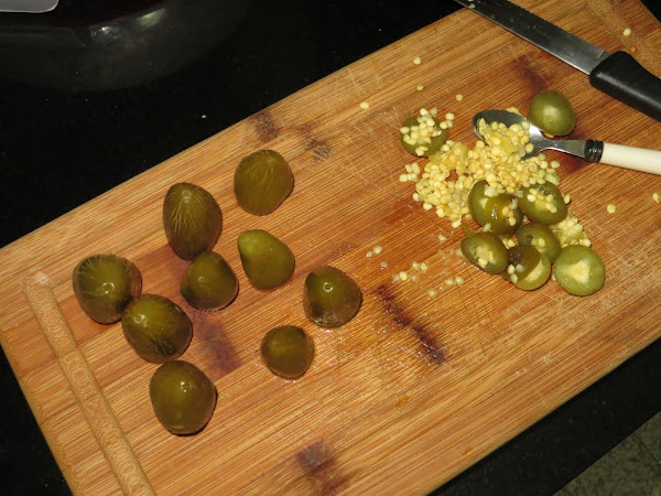 Lo primero que hacemos y al final es lo más laborioso es quitarle el culo a los jalapeños y quitarles todas las semillas teniendo cuidado para que no se rompa. Por ello es muy importante comprar una lata de jalapeños enteros y no en rodajas, ya que si no está receta no se podría realizar.