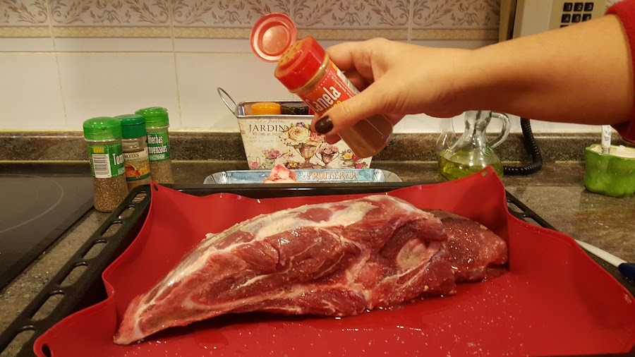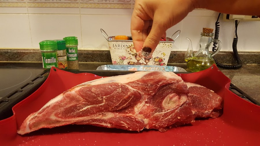 4.- Luego salpimentamos y embadurnamos de aceite toda la pieza.