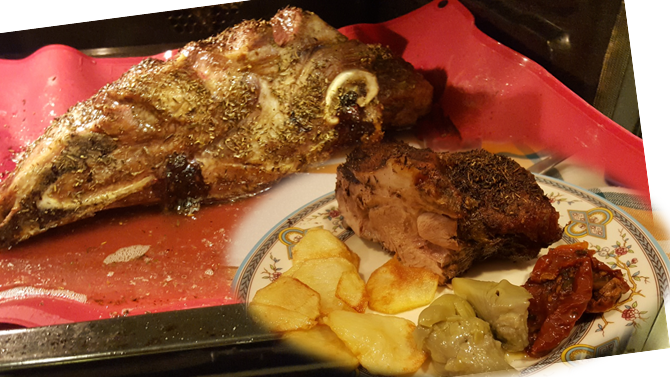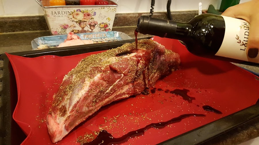 6.- Lo regamos con el vino y el agua y lo metemos al horno a 200, de 40 a 60 minutos, solo por abajo.