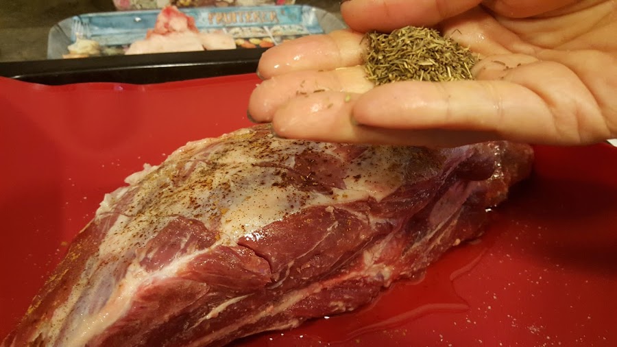 5.- Ahora espolvoreamos de canela primero, y después de tomillo y de hierbas provenzales.