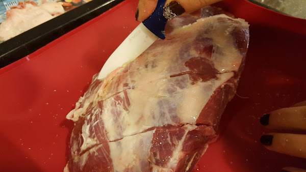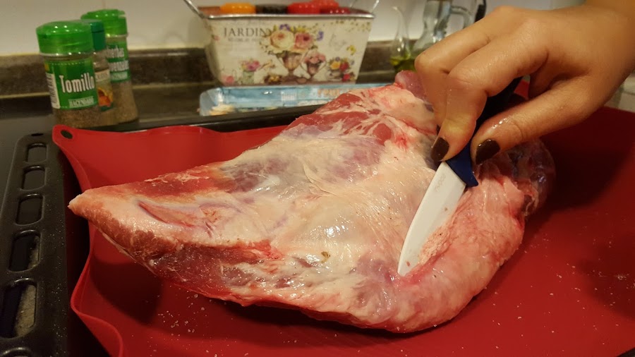 3.- Primero lo limpiamos, quitando el exceso de piel grasa que veamos (a nuestro gusto quitaremos más o menos). También le haremos algunos cortes, para que se cocine bien,