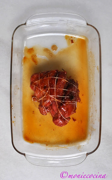 Con hilo de cocina atamos todo el jamón para darle una forma bonita y asarlo junto todo el trozo.