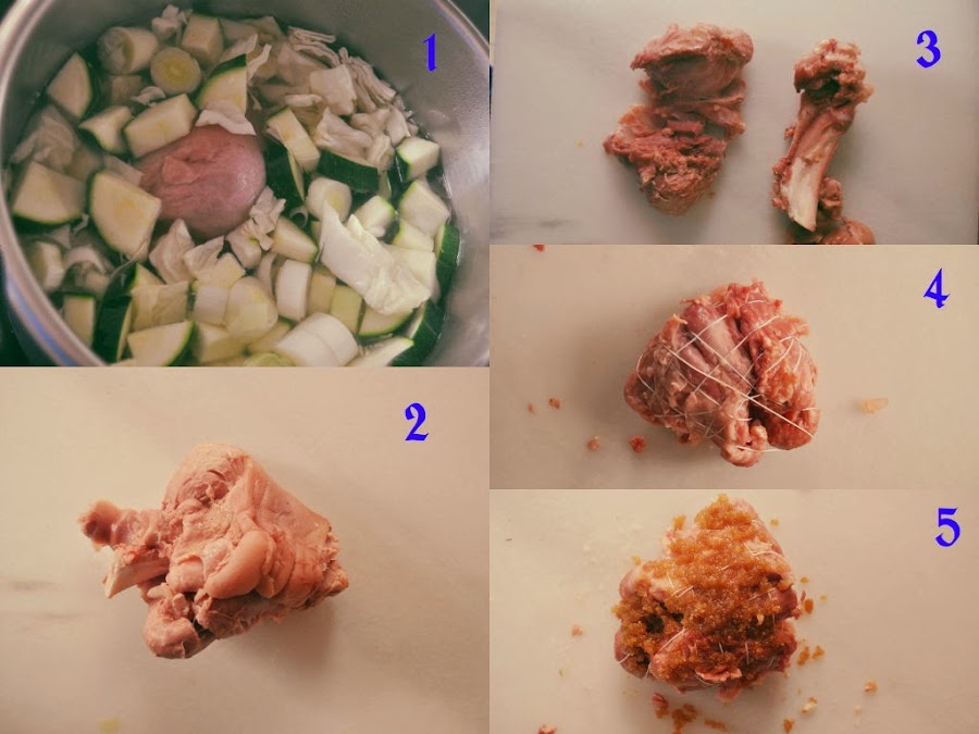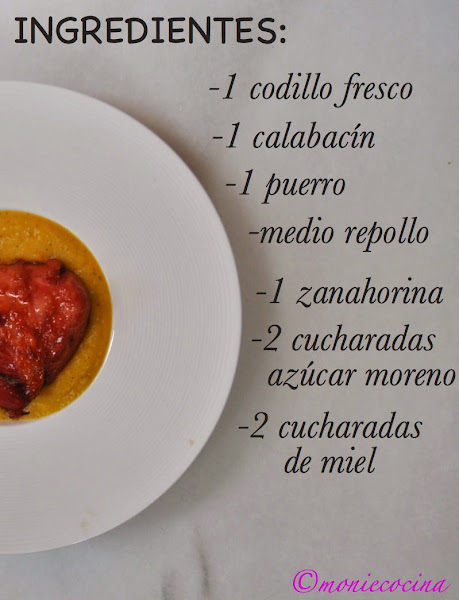 Por un lado vamos a preparar un codillo (crudo o medio en salmuera), lo coceremos con verduras, de ahí sacaremos por un lado el jamón, por otro con la verdura haremos un puré, y además podemos guardar el caldo donde hemos cocido lo anterior para una sopa riquísima. Eso es un tres en uno. Vamos a ello. Ah! se me olvidaba, gracias a todos los que os habéis preocupado por la gripe que quiso acabar conmigo y no pudo. Ya estoy a tope.