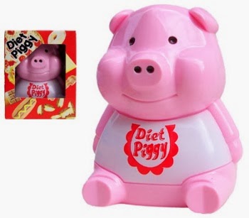 Desde que le regalé a mi amiga Petra el "Diet Piggy" está encantadísima de la vida, ya ha adelgazado 8 kilos, pero eso sí, la pobre ha cogido una depresión de caballo y un miedo atroz a abrir el frigorífico, ha llegado incluso a asociar al "simpático" cerdito con la niña del exorcista.