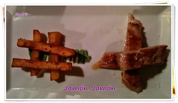 Los pinchos estaban bastante buenos (a mi me gustó mucho la hamburguesa de buey) y las patatas junto con el secreto, muy bueno también.