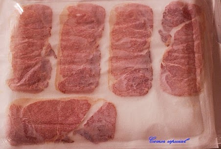 INGREDIENTES (para 2-3 personas): un paquete de jamón serrano de 150 gramos, dos bandejas de horno, papel de horno y paciencia.