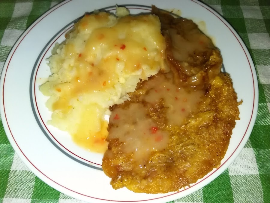 Varias formas de freírlo y para presentar puede ser con puré de patatas, o patatas fritas, como se quiera.