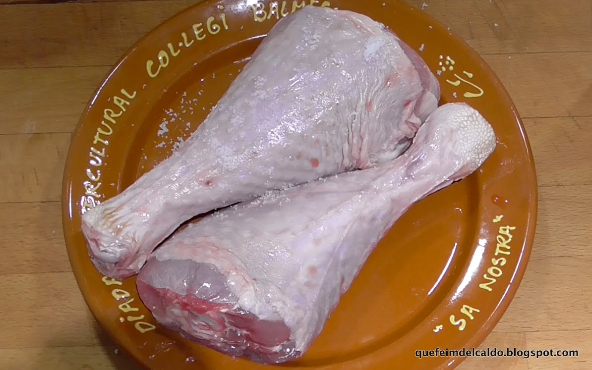 Al día siguiente empezamos a hacer la receta, para ello lo primero que hacemos es salpimentar los jamoncitos de pavo.