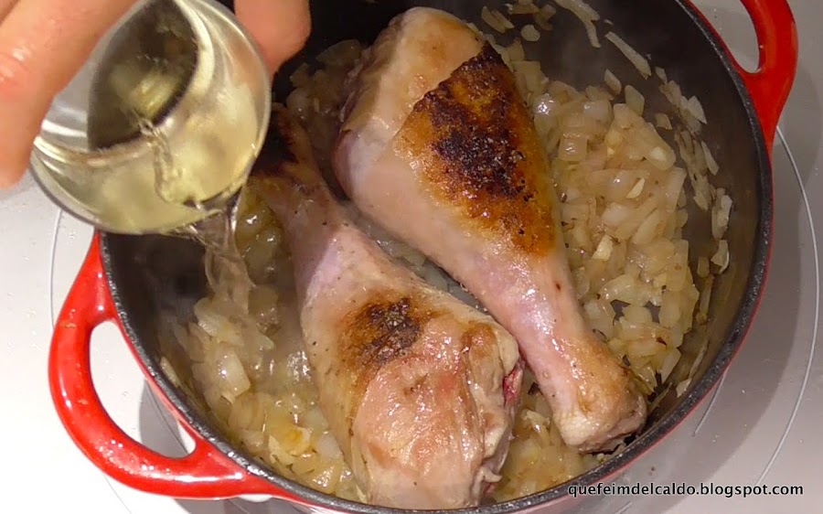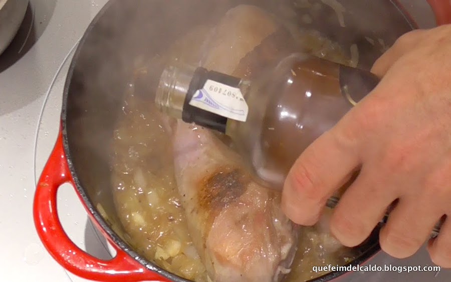 Le añadimos los 100 ml. de vino blanco.