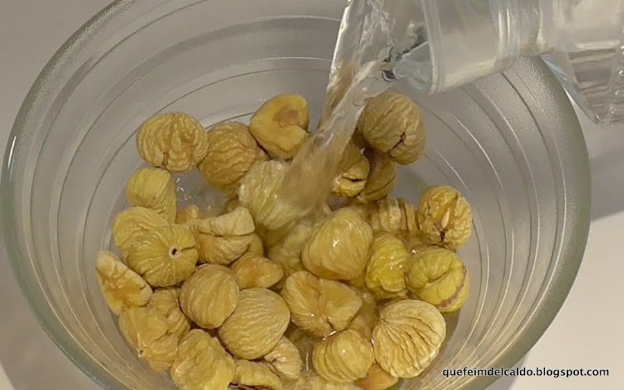 En primer lugar la vispera antes ponemos las castañas pilongas a remojo.