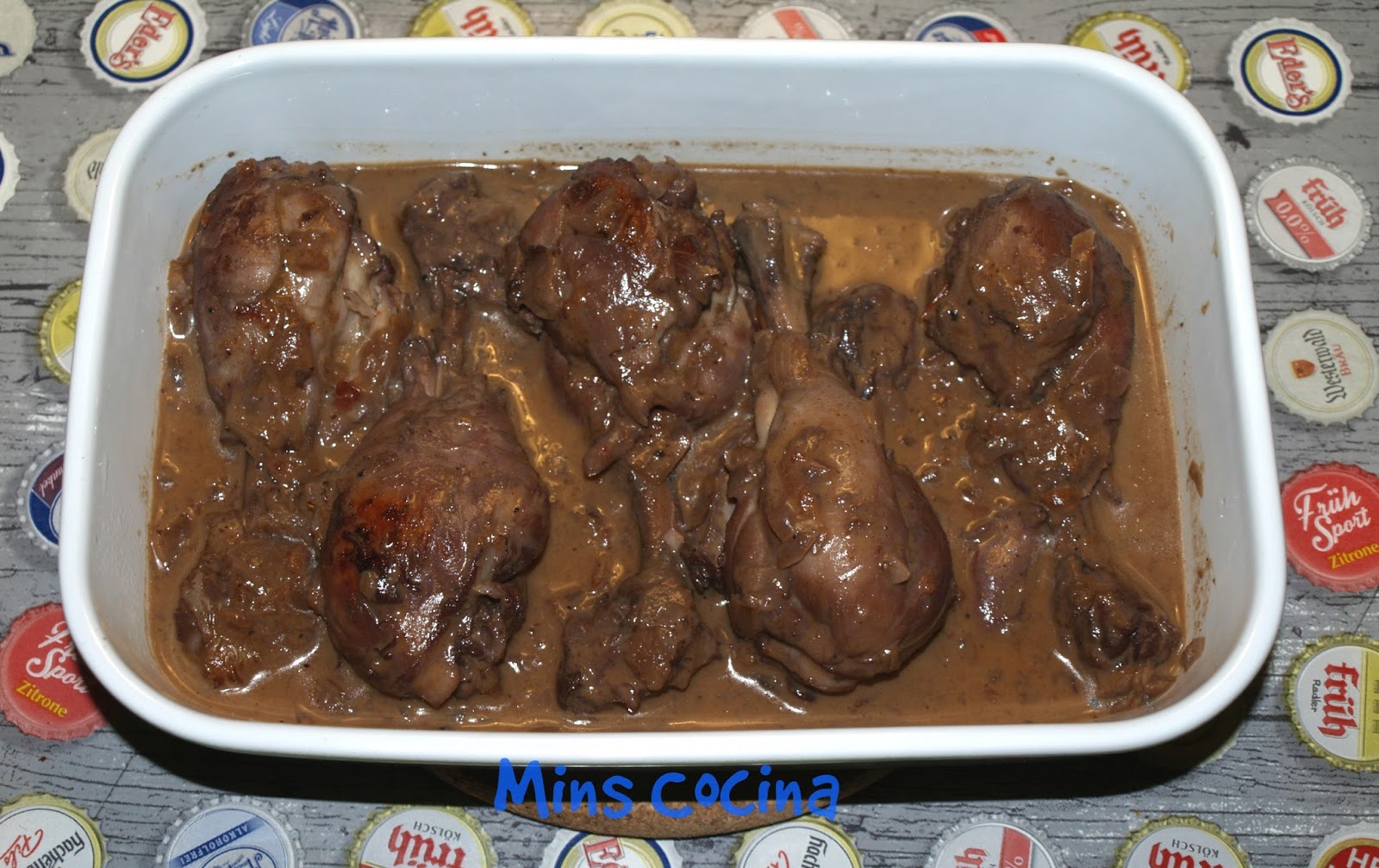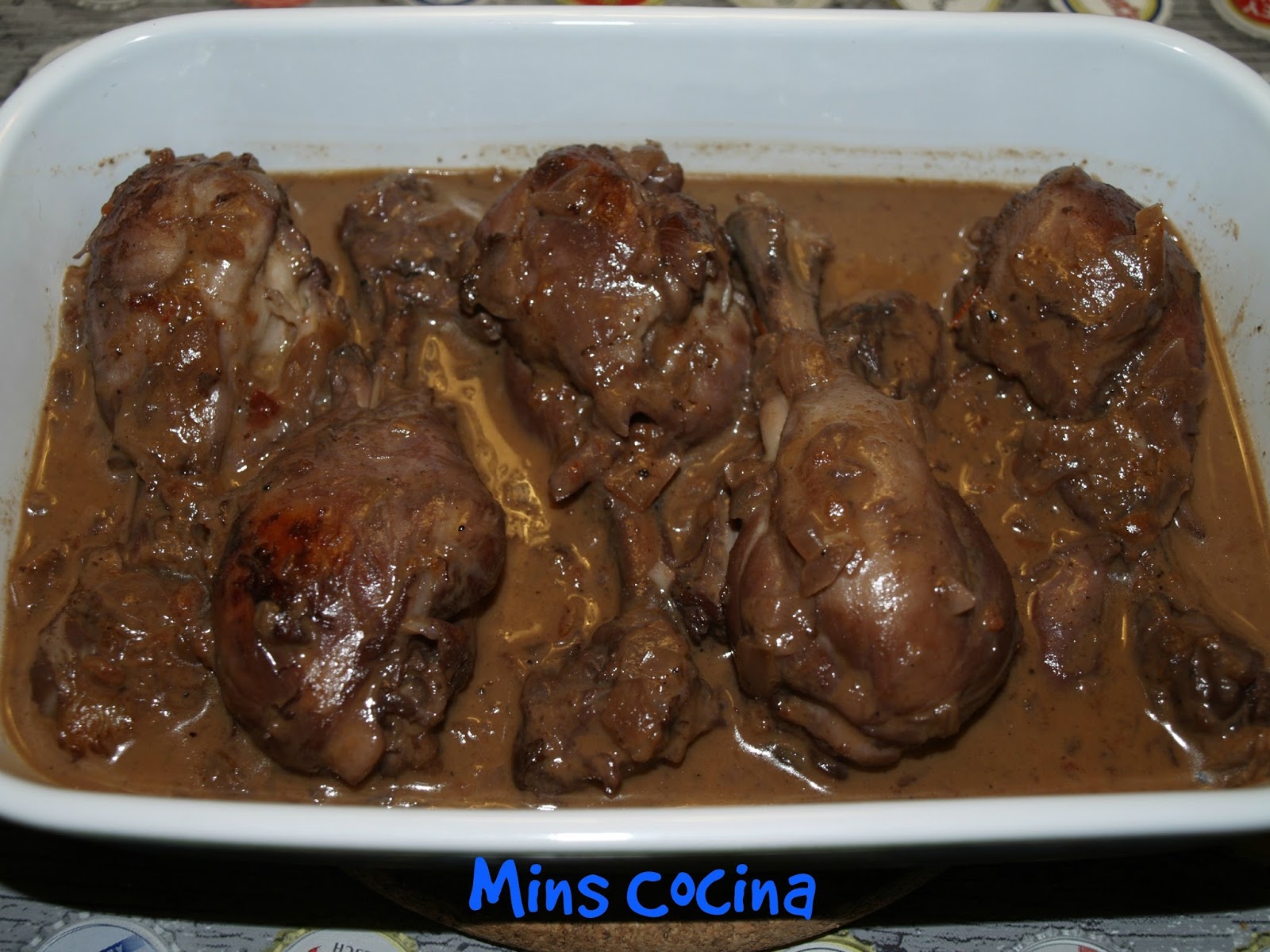 Empiezo diciendo que las fotos son malas y no hacen justicia al plato, pero es lo que hay. Estos muslitos o jamoncitos de pollo al vino tinto, que hacía tiempo que quería preparar y que adapté del blog Pasen y Degusten, estaban aún más ricos de lo que podía imaginar. Quedaron muy jugosos y aromáticos, y la salsa... en fin, no paramos de mojar pan hasta que no quedó ni gota, jeje. Creo que con eso ya os lo digo todo. Animaos a prepararlo, es facilísimo!