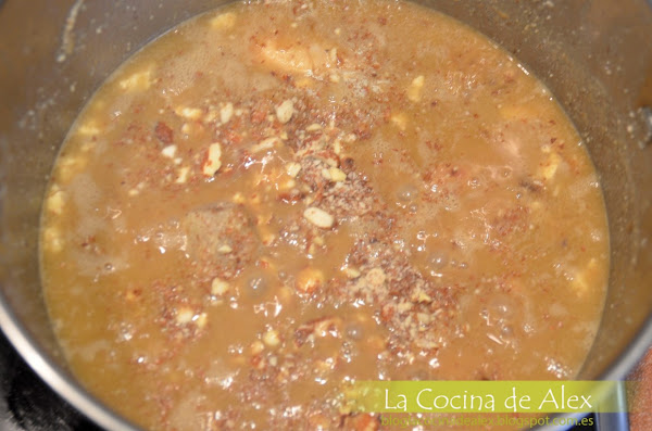 Para terminar, una vez hemos quitado la cazuela del fuego le añadimos la almendra picada.