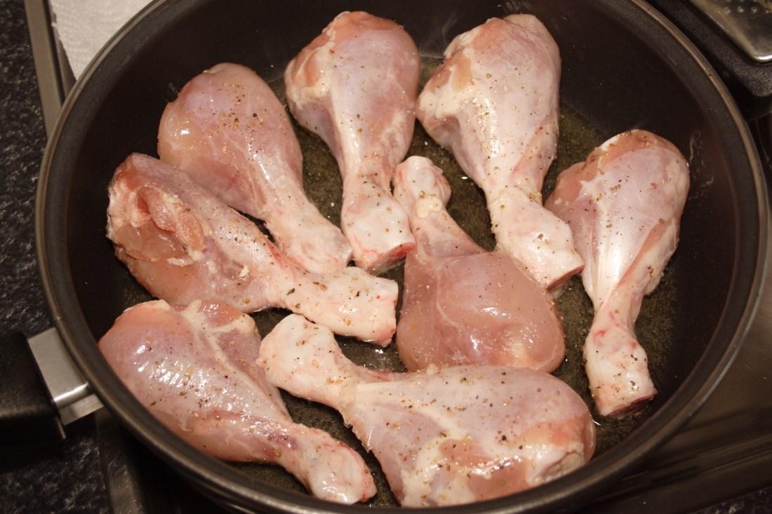 Limpiamos el pollo y le quitamos la piel. Salpimentamos y reservamos.