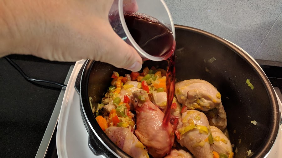 Incorporamos el vino y dejamos que se evapore el alcohol