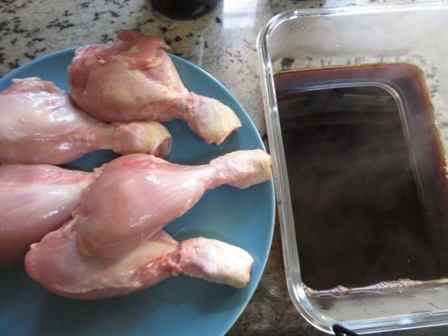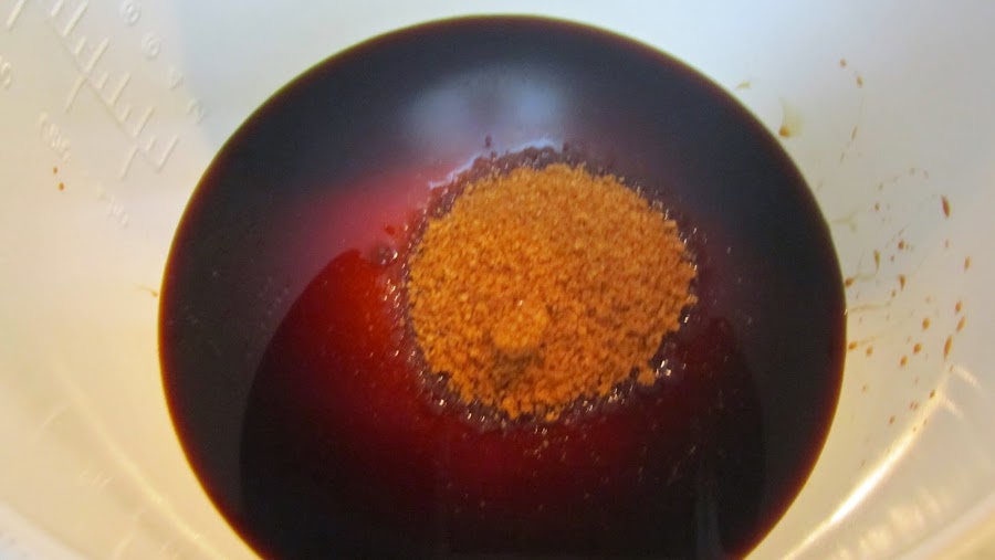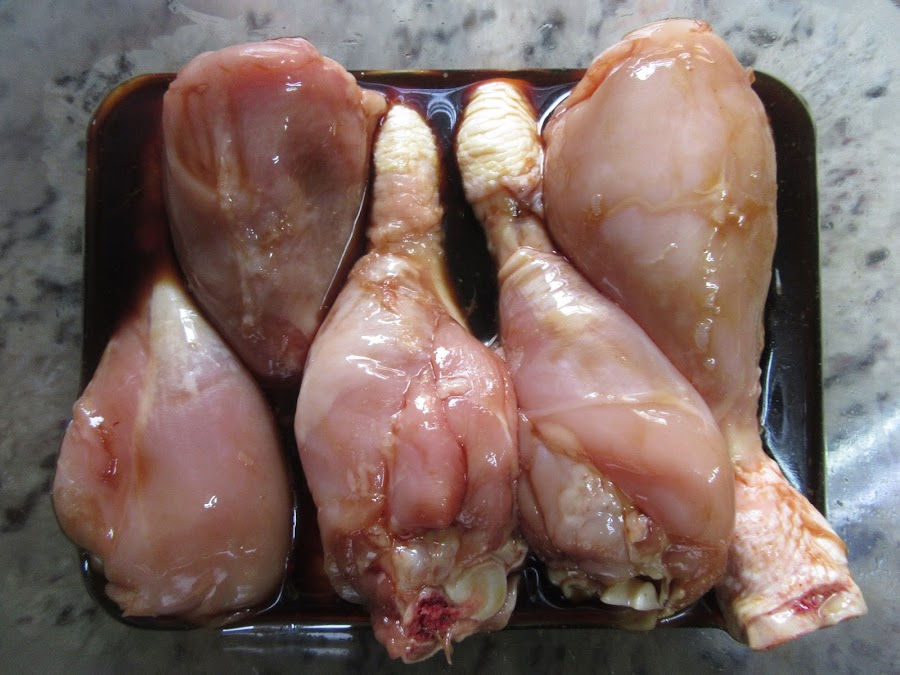 2- Poner en una cacerola la salsa de soja, el vino dulce y seco, azúcar moreno y jengibre, y dar un hervor destapado 3 ó 4 minutos. Dejar enfriar en un bol. Cubrir el pollo y dejar macerar una media hora, removiendo de vez en cuando, para que tome sabor y se impregne bien.