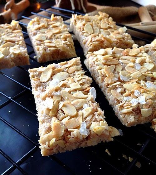 When the dough is done, take them out of the oven and cut into rectangules or diamonds with a serrated knife before they get cold.