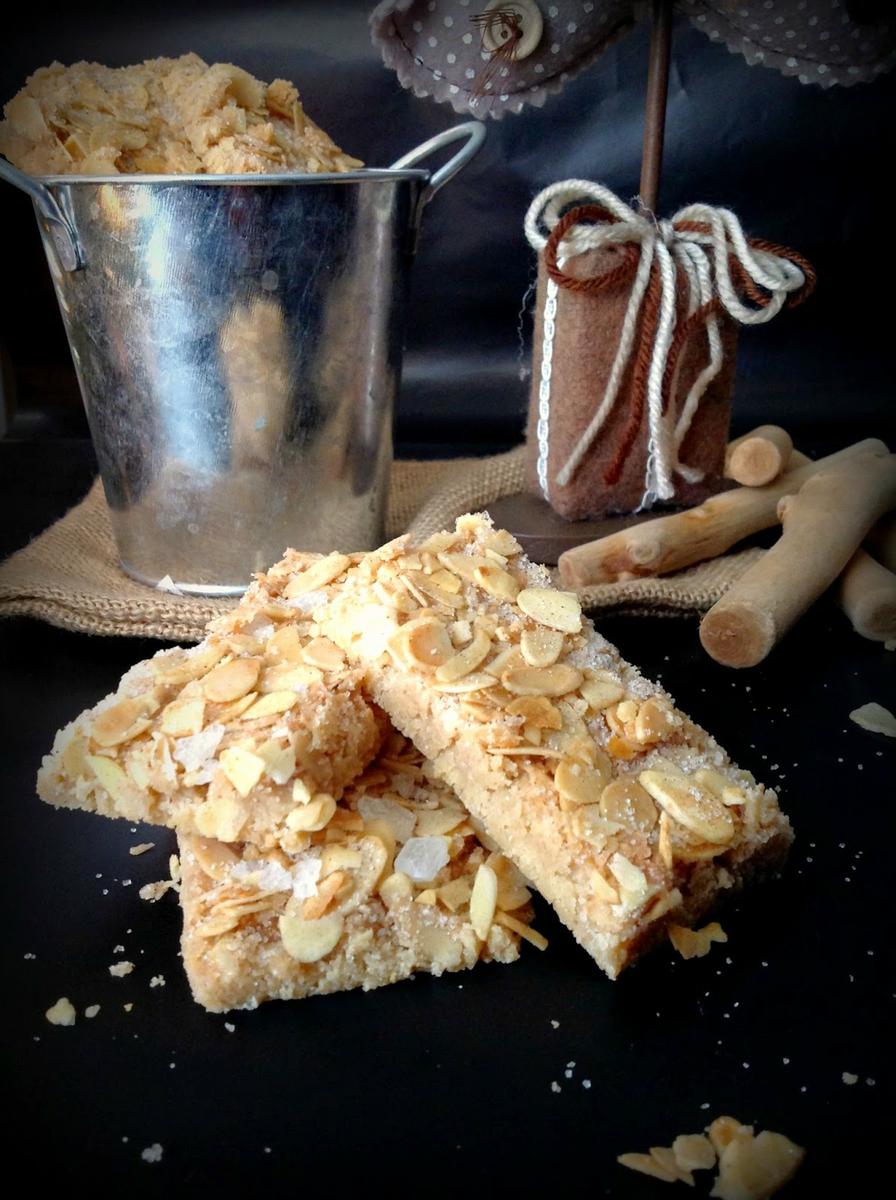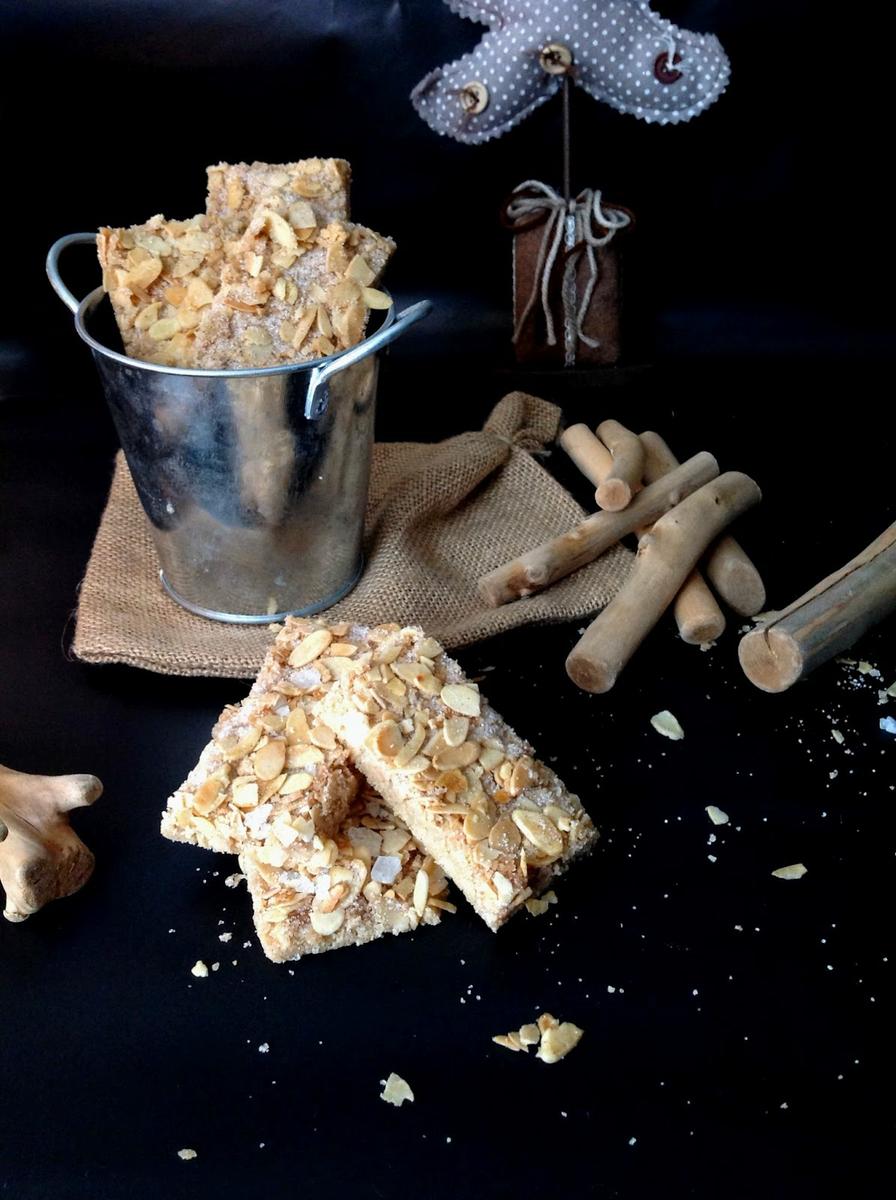 Pero, aparte de eso, estas galletas están buenísimas. Son muy finitas y muy crujientes, y con las láminas de almendras por encima quedan espectaculares. Hay quienes le echan azúcar perlado por encima pero yo no tenía en el momento así que fueron sin él. Y no les hace falta porque son deliciosas. Me recuerdan a las tortitas de polvorón que comía cuando pequeña. ¿Os apetecen? Pues, coged la receta y sorprended a los vuestros en estas fiestas. Además, no llevan huevo, lo cual es estupendo para los alérgicos a este producto.