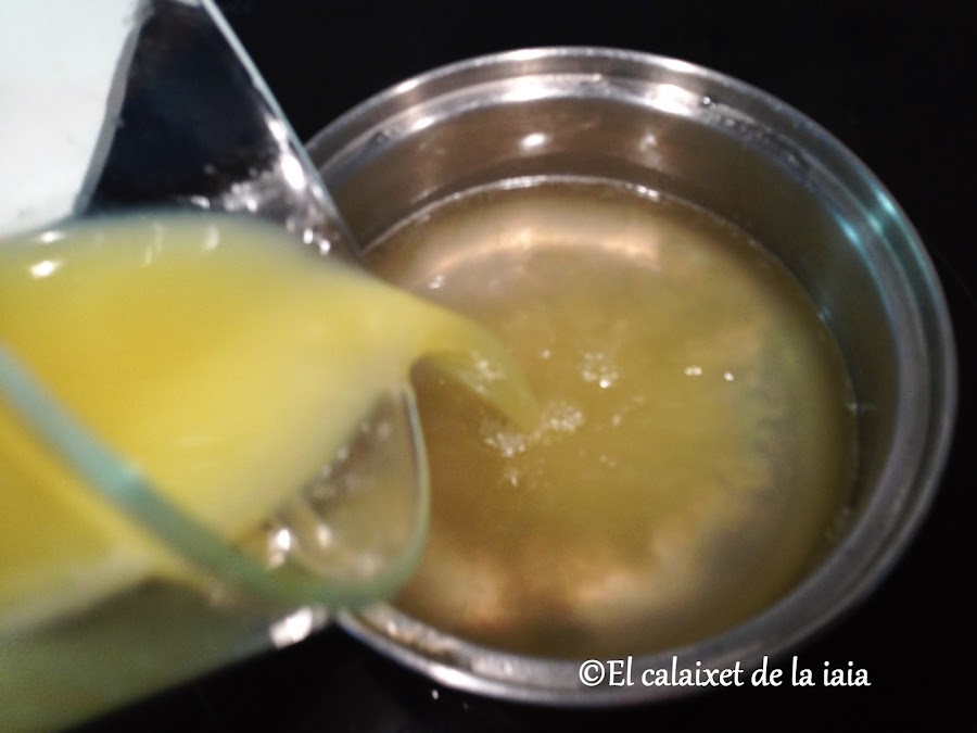 y añadiremos al jarabe el zumo de limón, la ralladura y el agua, cuando de un par de hervores, dejaremos enfriar