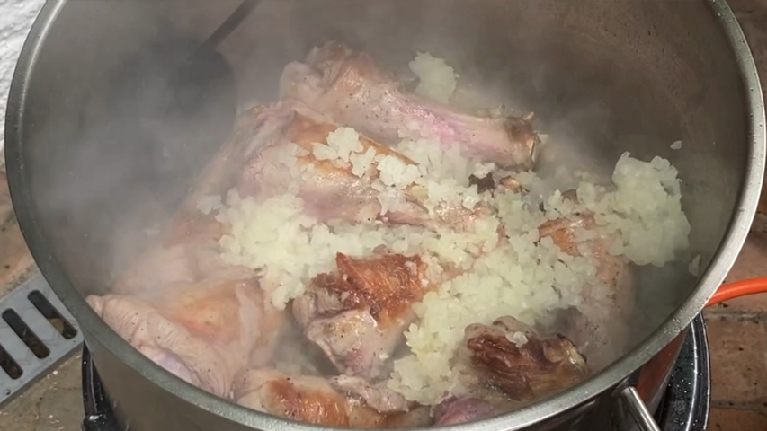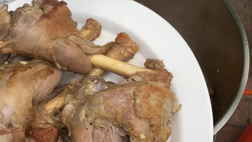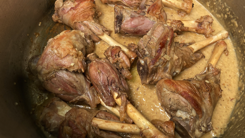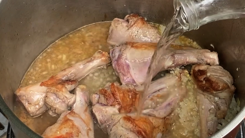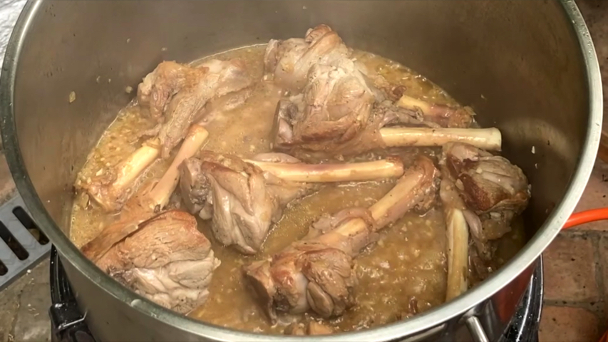 Cuando la carne se desprenda fácilmente del hueso el guiso está hecho.