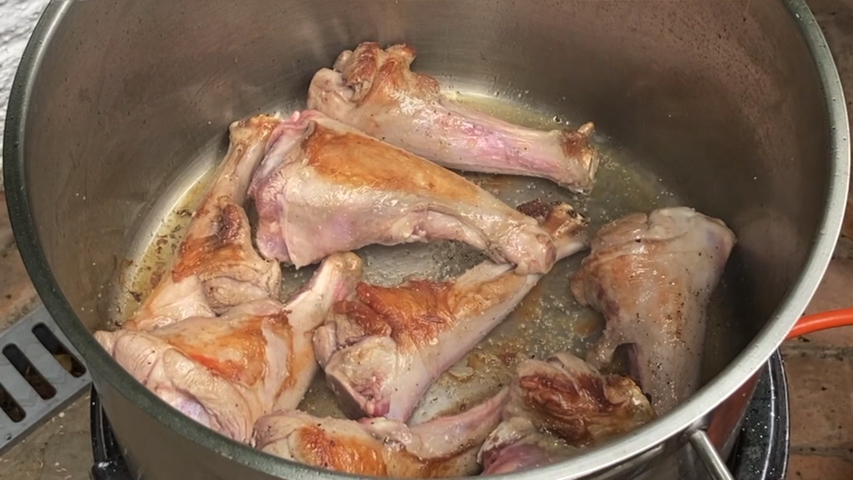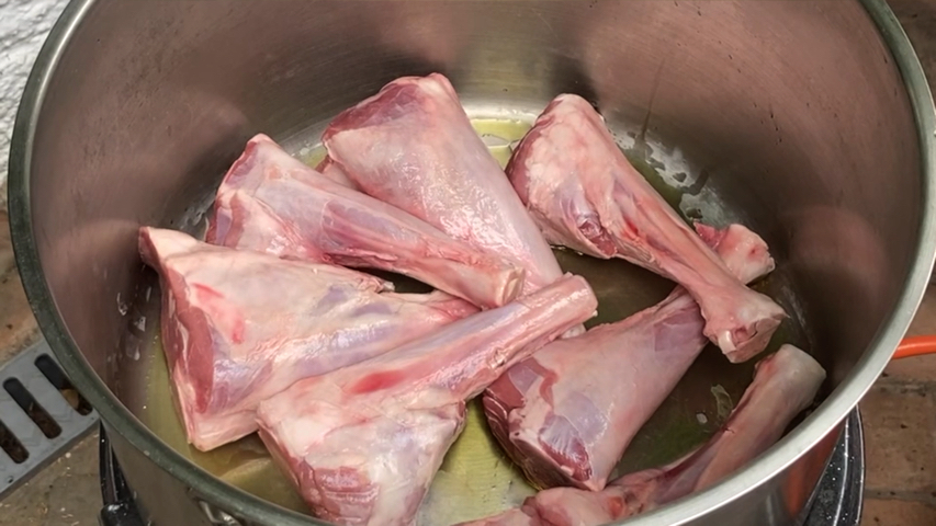 Introduce los jarretes de cordero y deja que se doren por un lado.