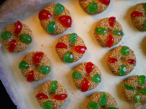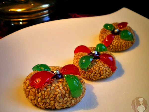 La Jeljlaniya en un dulce elaborado con pasta de avellana, almendra y sésamo, (aunque hay recetas que incorporan al cacahuete en lugar de avellanas, y que a mi parecer, creo que es una alternativa de lo más recomendable), todo tostado previamente y combinado con miel y mantequilla para formar una masa de la que tomaremos porciones para rebozarlas en semillas de sésamo o ajonjolí. Se decora con un poco de mermelada, guindas confitadas y una bolita de anís, configurando de esta manera, una delicia exquisita y muy atractiva a la vista.