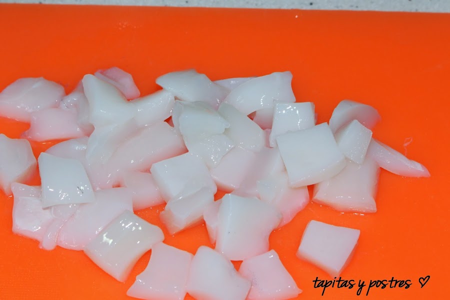 Este plato de jibia en salsa es una receta muy malagueña. Se toma en los bares como picoteo, acompañado de unas patatas fritas y está riquísimo.