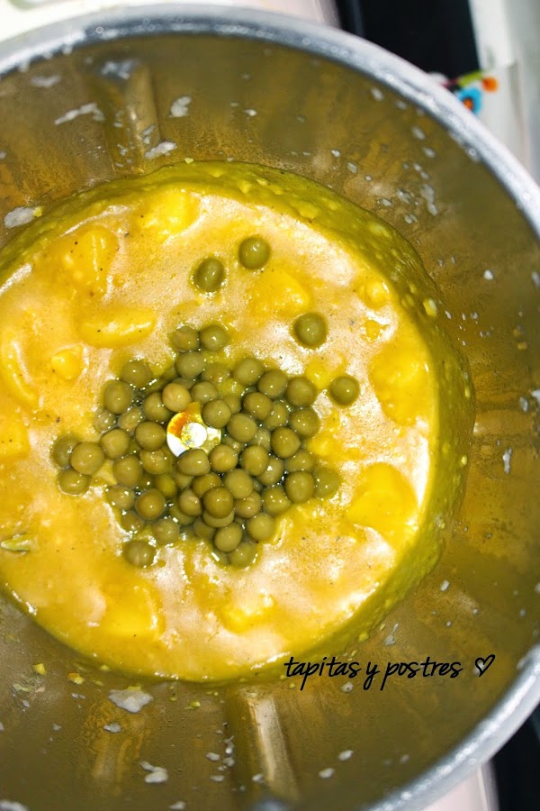 Encontré esta receta en la página recetas con y sin thermomix y le he añadido una pastillita de caldo y unos guisantes de lata. Creo que le van muy bien.