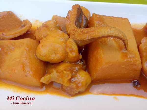 Con el resto de la jibia y su bazo, la melsa, preparé ésta exquisita jibia en salsa.