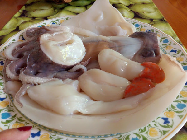 En ésta ocasión usé una jibia de dos kilos de peso. Debo confesar que sólo así las encuentro en un puesto, en el de mi pescadero Antonio, en el Mercado de Huelin. Un trozo del cuerpo y su hueva lo puse frito, como aperitivo; tan fácil como cortar los trozos como de un bocado, salando al gusto, enharinando suavemente con harina de trigo y friendo en aceite de oliva virgen extra, muy caliente.