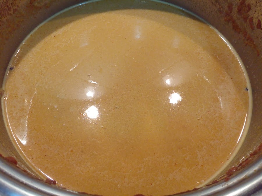 y con sumo cuidado, con una cuchar, ir sacando el liquido marrón que contiene la bolsa. Reservar.