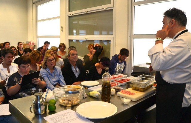 El día empezó con la masterclass del cocinero Pere Arpa, chef del restaurant Ca lArpa de Banyoles que ostenta una estrella Michelín y dos soles Repsol, o sea todo un lujo.