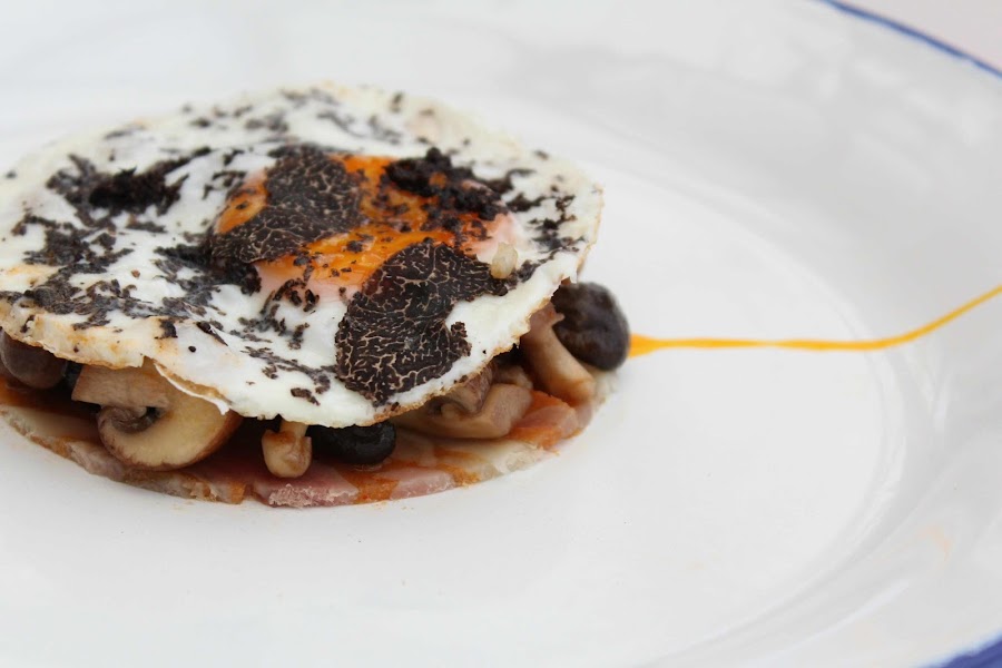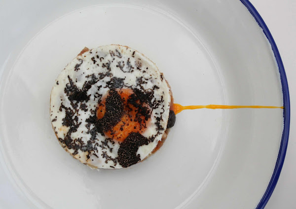 Trufa laminada o rallada como para una boda y le pintas el chorretón de yema.