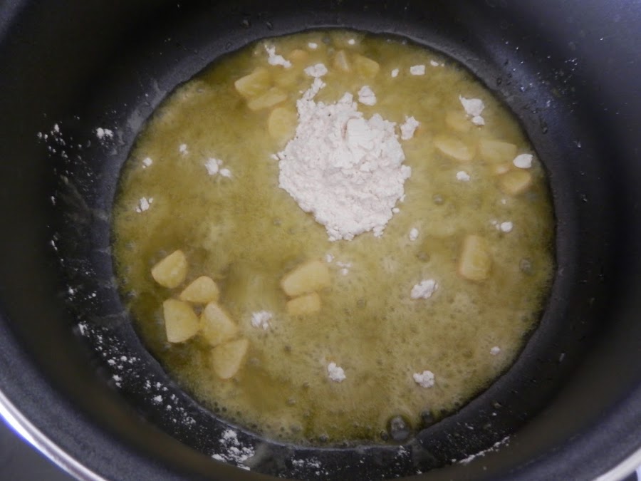 Cuando los tengamos dorados, añadiremos una cucharada de harina y las almejas.