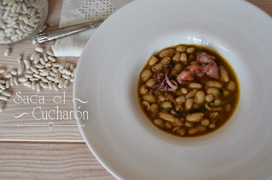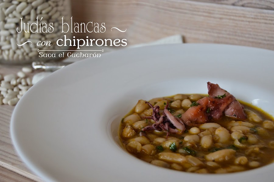 Al servir, depositamos en cada plato una buena ración de judías blancas y sobre ellas colocamos chipirones salteados. Podemos espolvorear un poco de perejil picado por encima si deseamos.