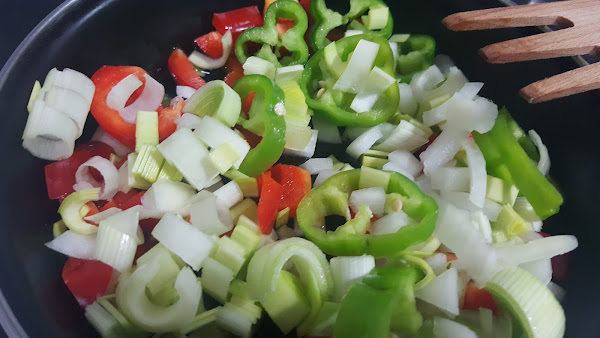 4.- Añadimos las verduras a la sartén y las dejamos pochar de 10 a 15 minutos.