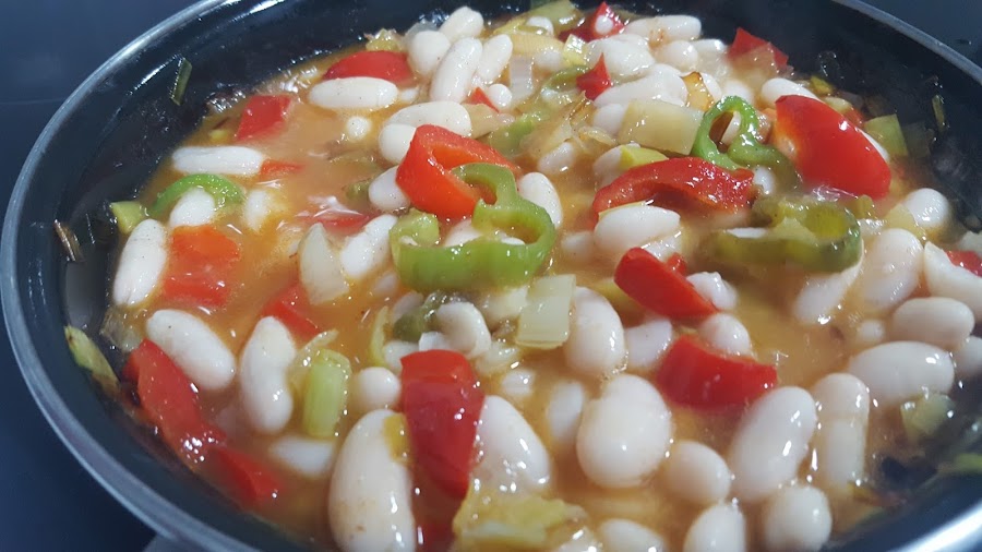 5.- Una vez que estén cocidas las verduras, añadimos las judias reservadas y lo mezclamos unos minutos, hasta que se esté bien integrado y caliente.