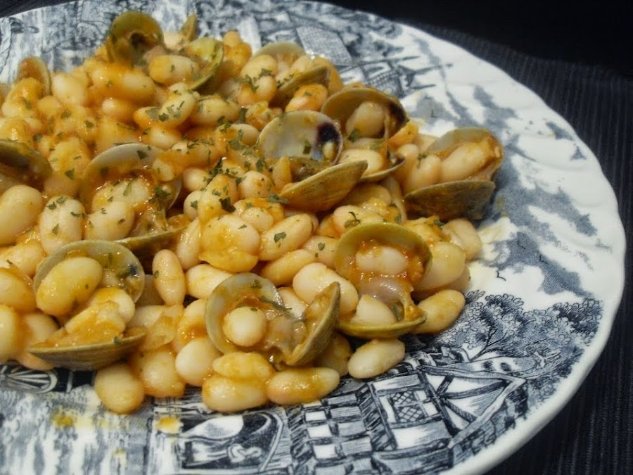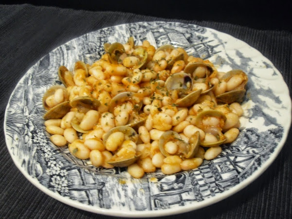 Colar las judías, agregar las almejas y cubrir con el caldo reservado de las almejas y el perejil picado, remover y cocer hasta que espese, unos 20 minutos.
