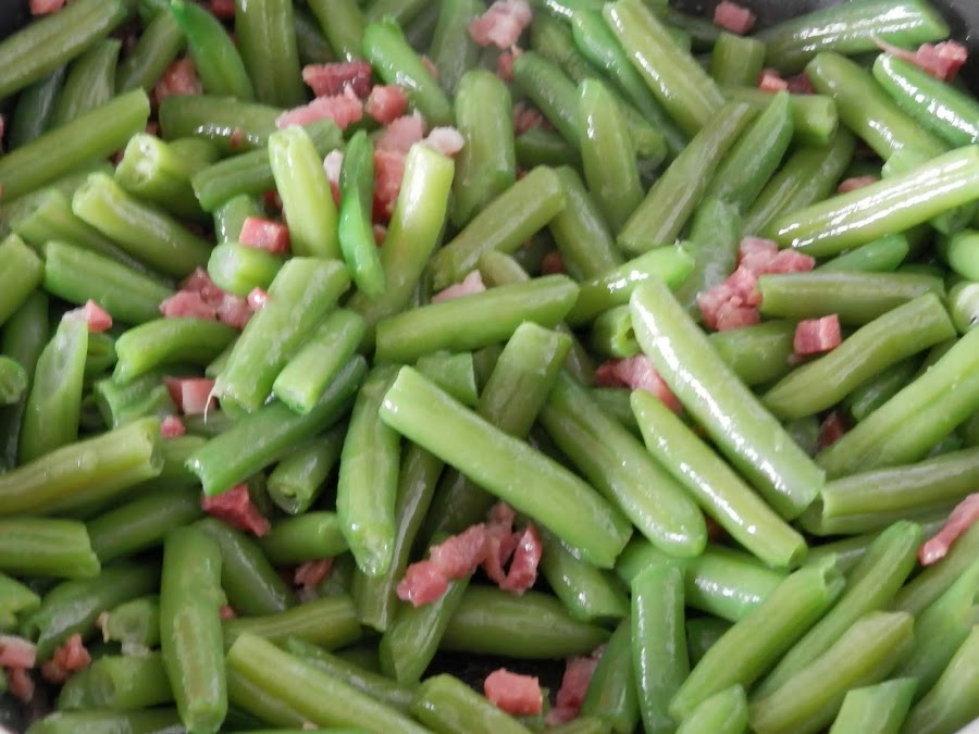 Añade ahora las judías verdes y saltea junto.